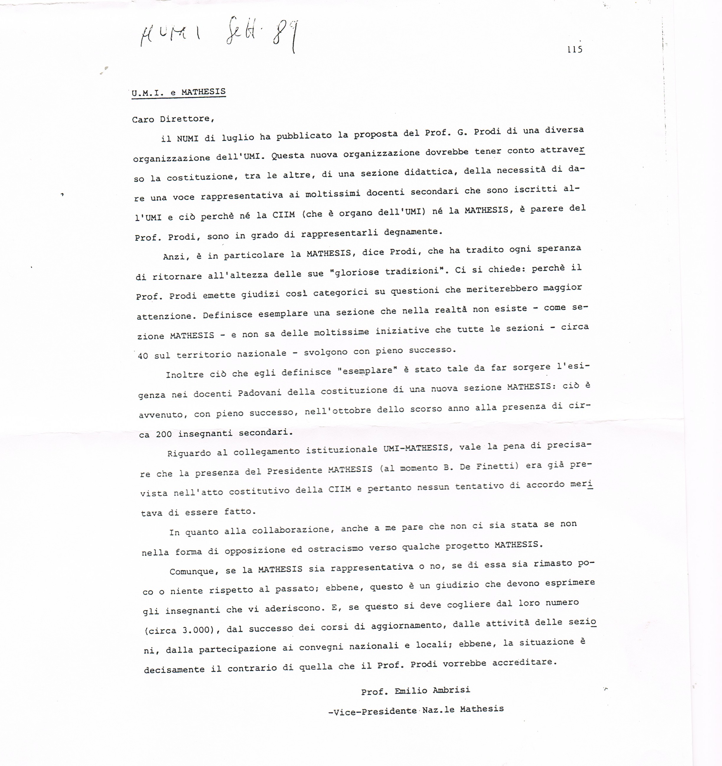 Documenti sulla fondazione della sezione Mathesis di Gioia del Colle