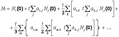 Prendiamo in considerazione l’iesimo membro, il cui numero di atomi Ni può essere calcolato per mezzo della seguente equazione differenziale: