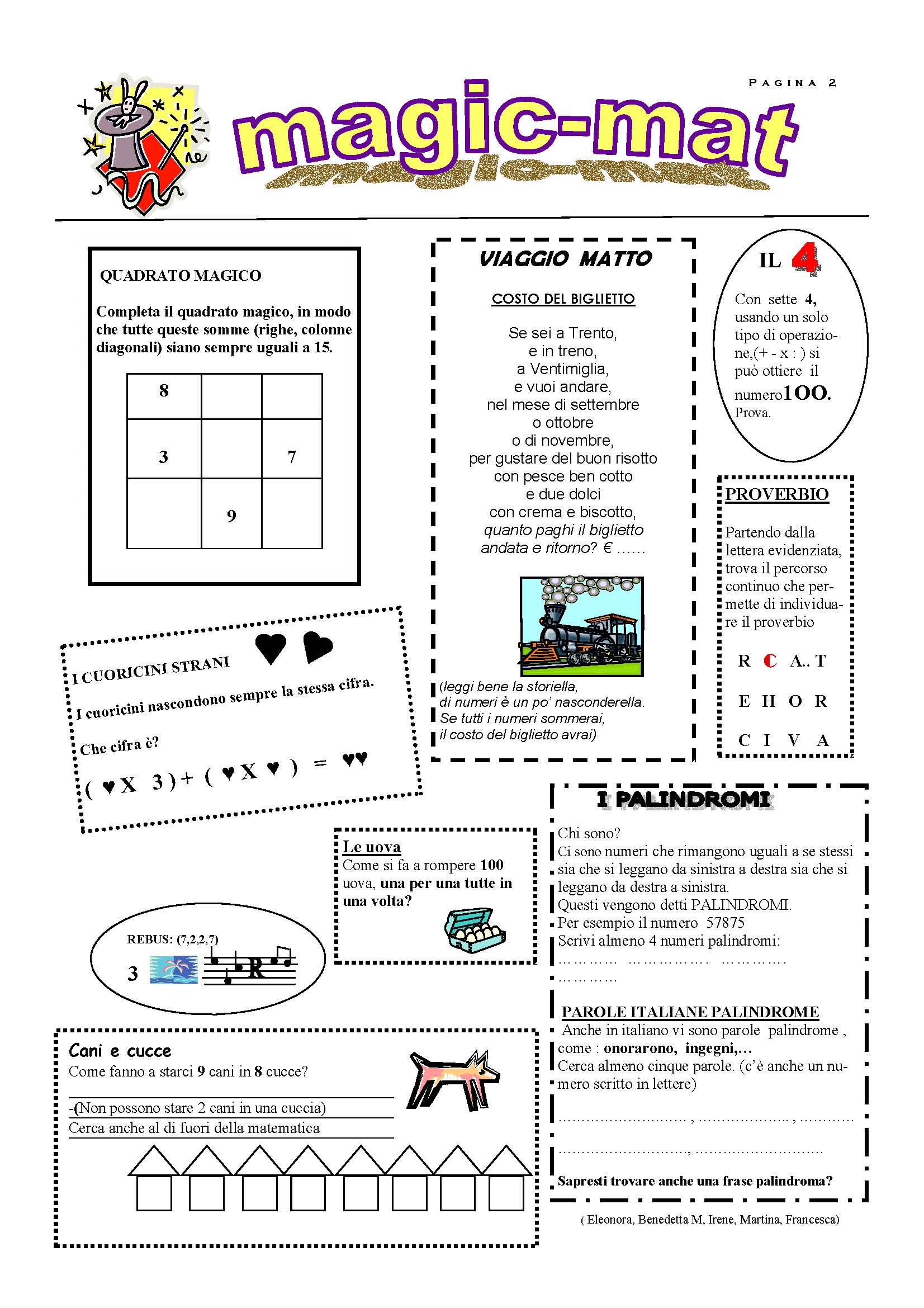 Il giornale realizzato dai bambini della Scuola Angelo Custode di Alessandria che amano la matematica e dell'insegnante Suor Piera Bonadè che la fa amare |